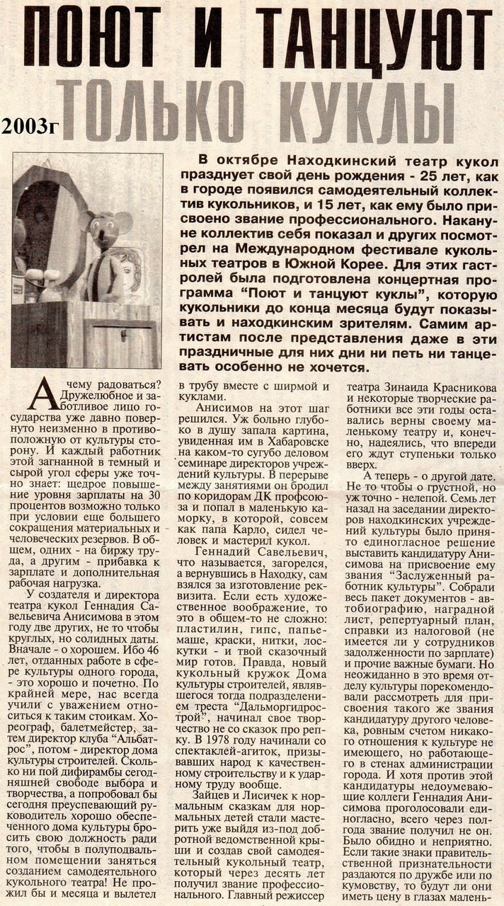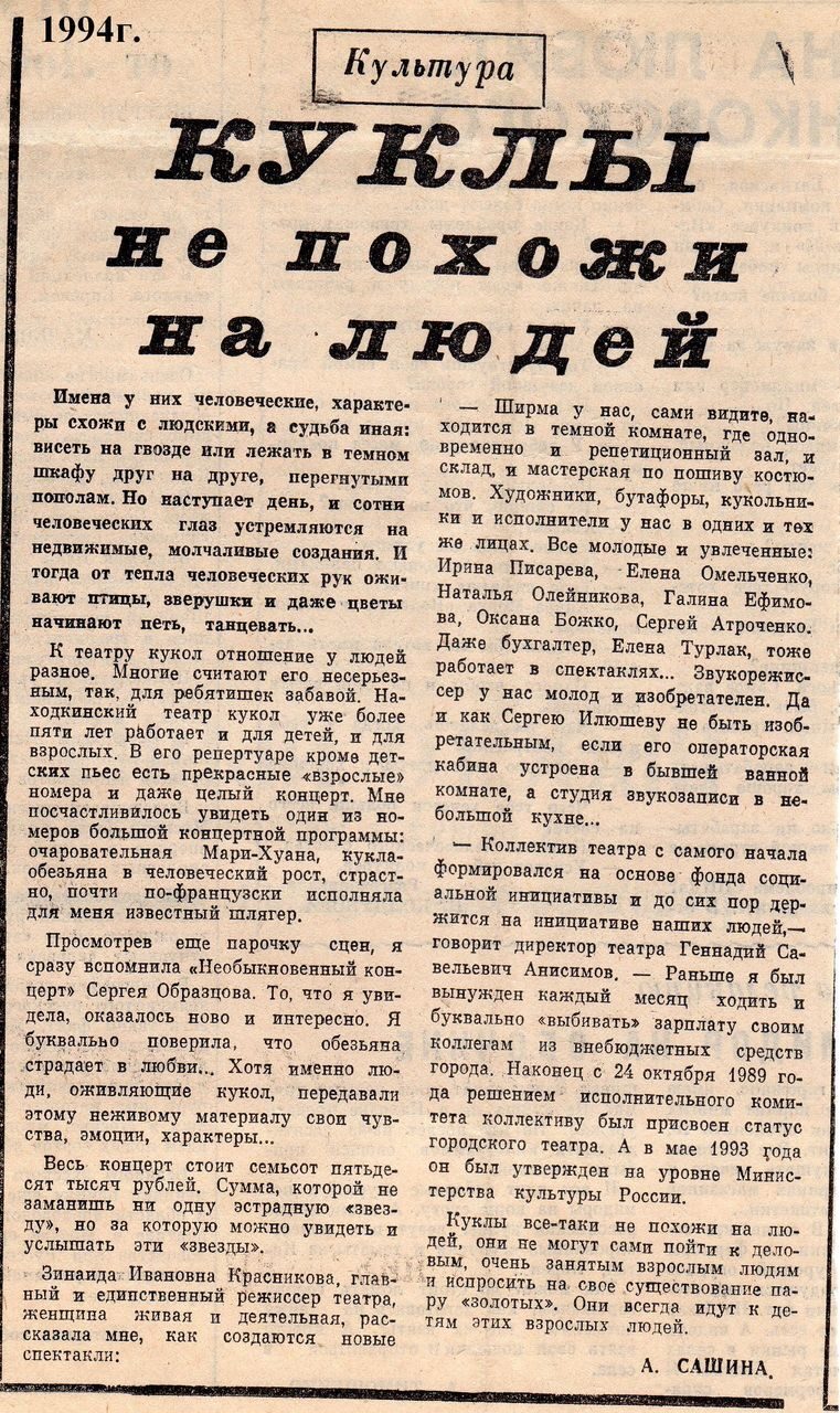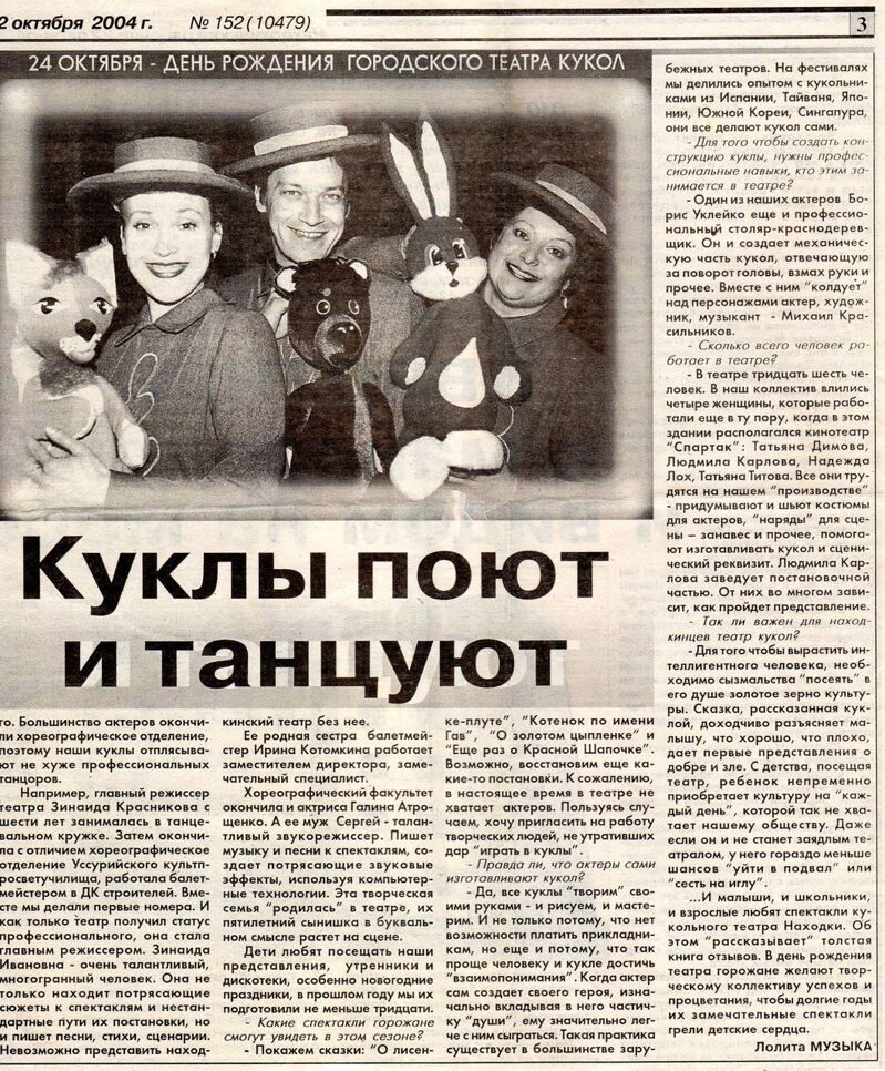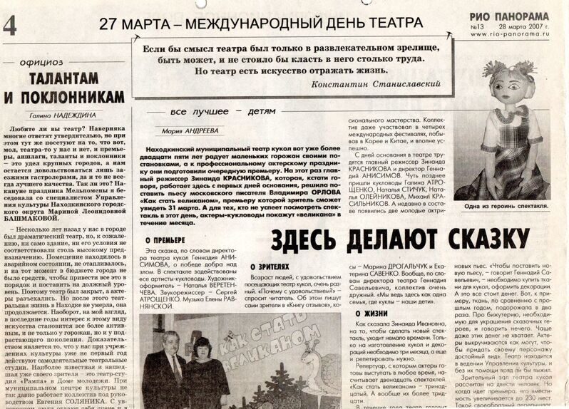 NR-CITYNEWS городская общественно — политическая газета "Находкинский рабочий" - 23.03.12г. "Здесь куклы пляшут и поют"