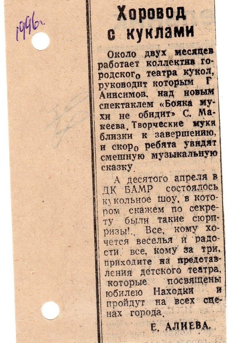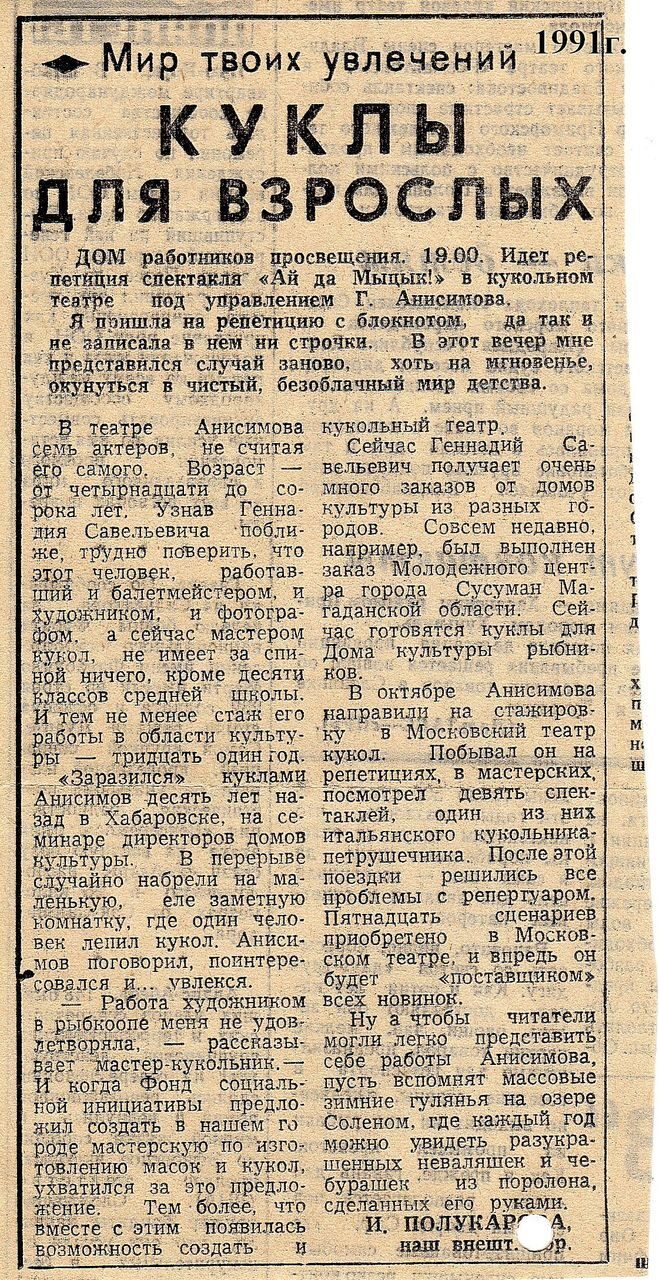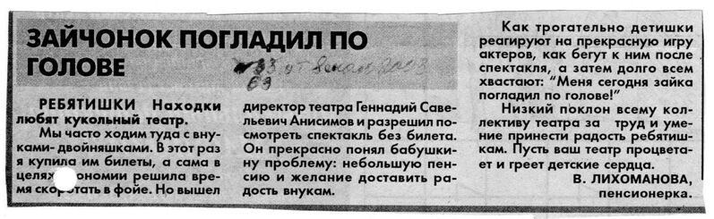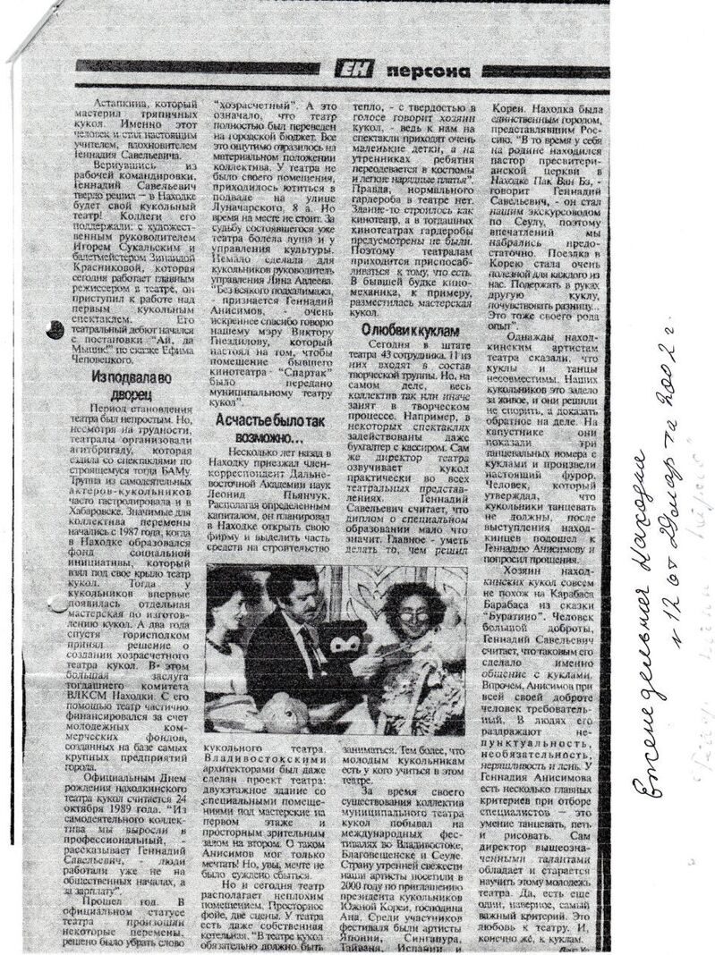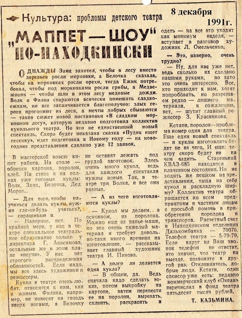 NR-CITYNEWS городская общественно — политическая газета "Находкинский рабочий" - 23.03.12г. "Здесь куклы пляшут и поют"