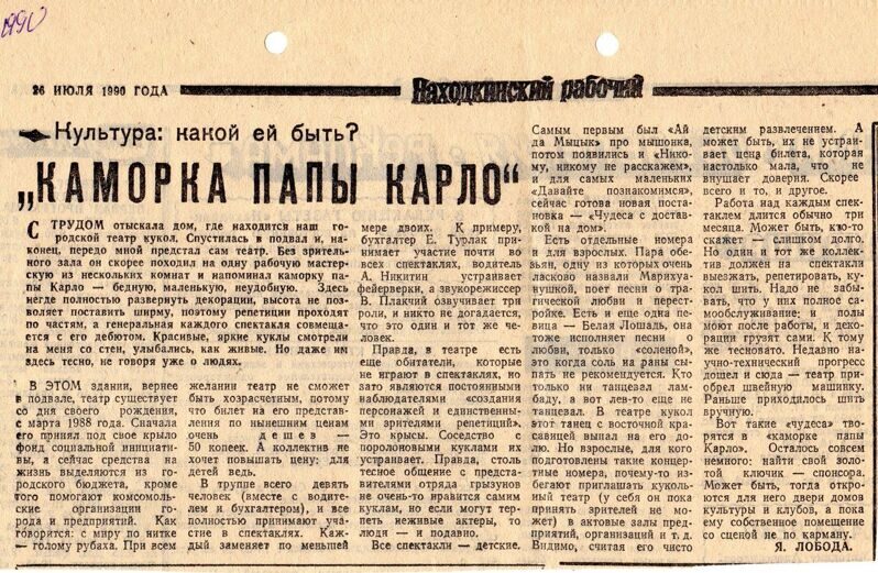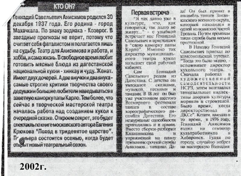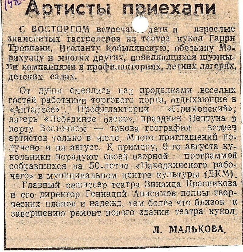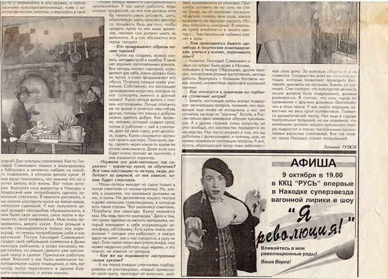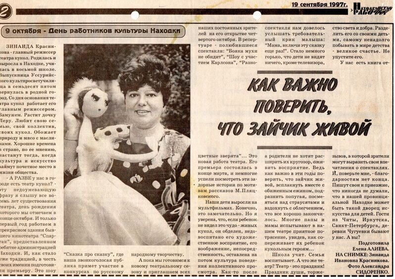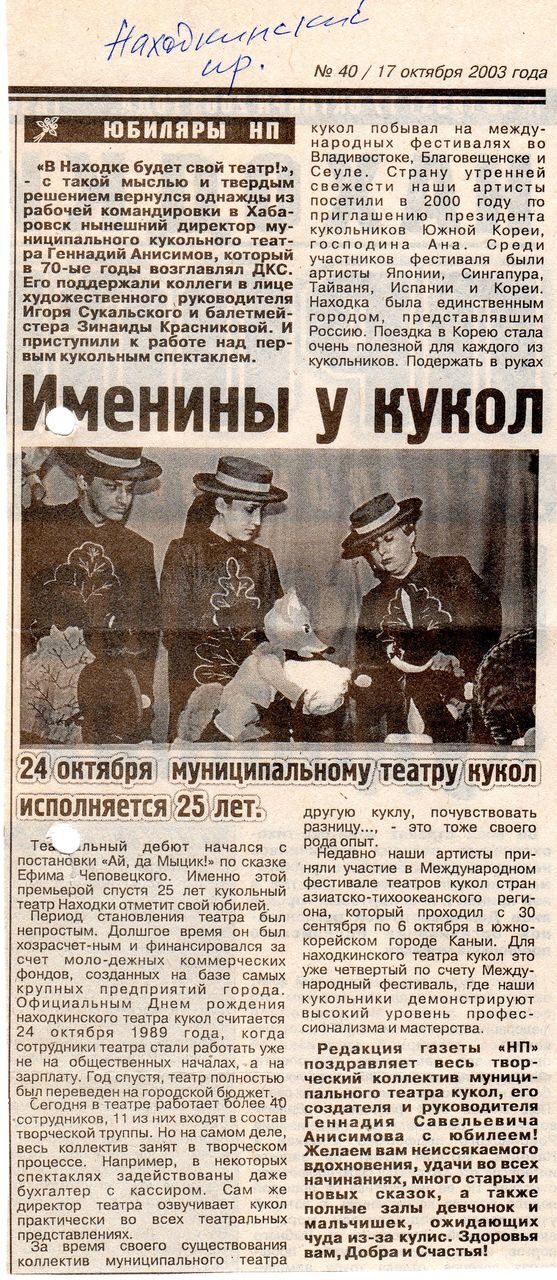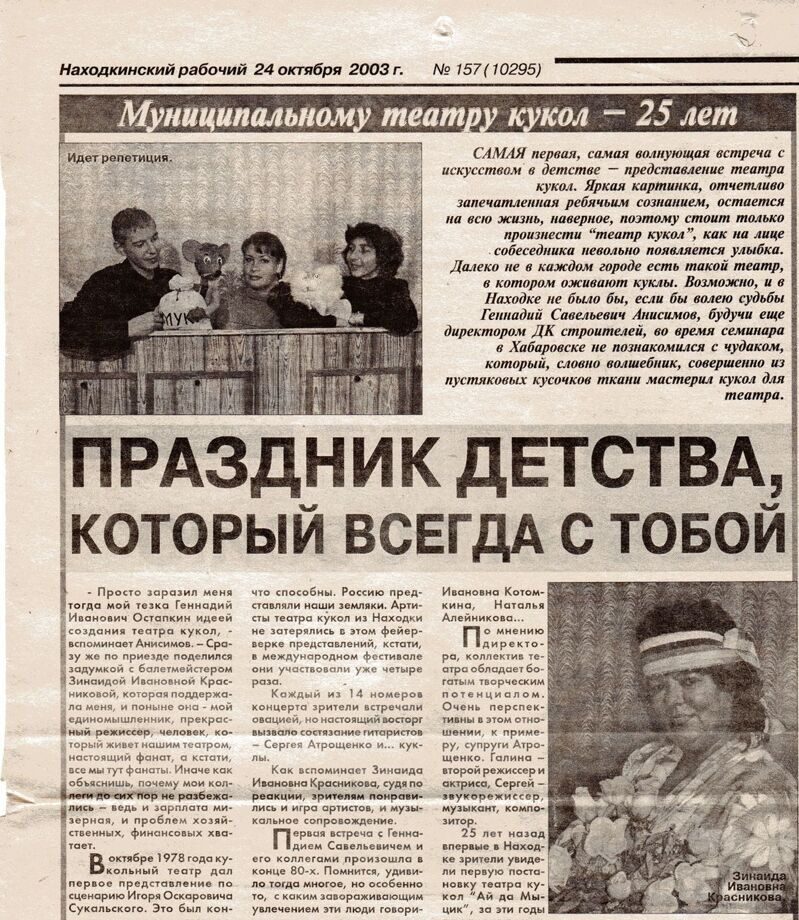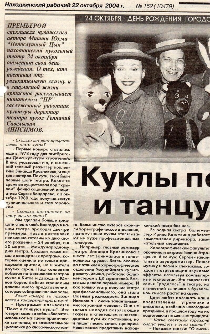 NR-CITYNEWS городская общественно — политическая газета "Находкинский рабочий" - 31.10.2014г. "Спектакли кукол"
