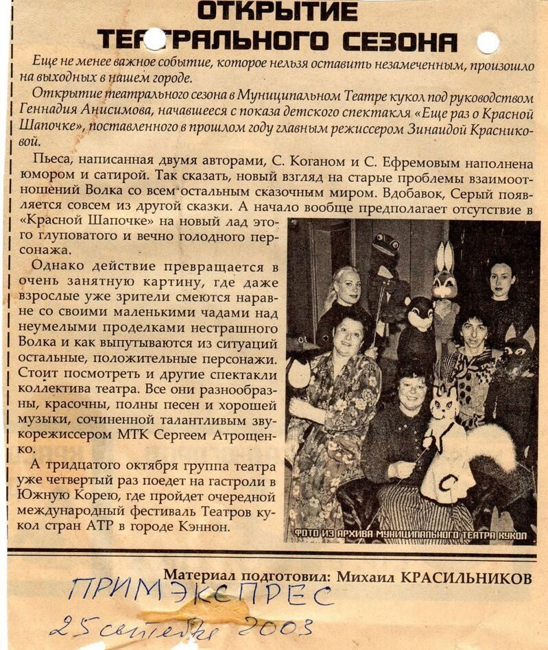 НАХОДКА.info - 14 Сентября 2012г. "ТЕАТР КУКОЛ ОТКРЫВАЕТ СЕЗОН"